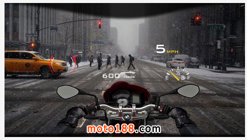 DigiLens設(shè)備依靠磁力將其與頭盔固定在一起,鏡片就在用戶眼前,可以實(shí)時(shí)提供信息更新,比如交通警示、燃料使用情況、速度和引擎功能。外部環(huán)境數(shù)據(jù)將會(huì)顯示在鏡片上,并以360度視角來展示摩托車周圍的交通和路況。