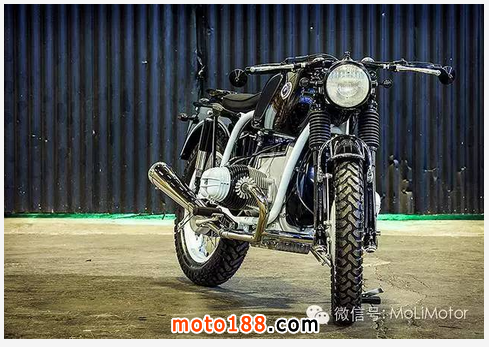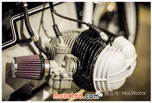 下一個重點就是要幫這臺車改快一點.根據Donovan的記憶.原廠配備非常的慢.但引擎經過改裝之后.現在可以很輕松地維持在時速120公里.改裝品包括600cc的活塞以及R60/5的汽缸頭.因為原廠的Bing化油器有一些呼吸道的疾病.于是幫她重新換上K&N香菇頭.為了達到理想的進氣量.加裝了一個戰斗機樣式圖案的空氣整流盒在引擎上方.排氣想要有cafe racer的風格.改成稍微向上揚起的Dunstall排氣管.搭配接在鰭片式排氣孔的38mm頭段.