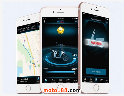 GenZe 2.0還引入了CAN總線,標準和汽車的一樣。這輛車內置了愛立信的通信模塊,可以與手機互聯(lián)。GenZe公司為此專門制作了一個App,可以查看車輛位置、充電狀況、天氣、規(guī)劃適合騎行的路線等。