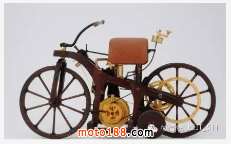 原始摩托車,現存于德國慕尼黑科學技術博物館的真實造型,是德國人(注意:還是德國人)戈特利布·戴姆勒和他的助手邁巴赫(就是這哥倆)于1885年8月29日獲得專利發明優先權的世界上第一輛摩托車。他們造出一臺氣冷二沖程垂直單缸、以汽油為燃料的內燃機。兩人把這臺發動機安裝在以橡木為車架的單車上,世界上第一輛摩托車也隨之誕生了。該車后輪26寸,采用皮帶傳動加一級齒輪變速,最快時速11.2公里/小時。