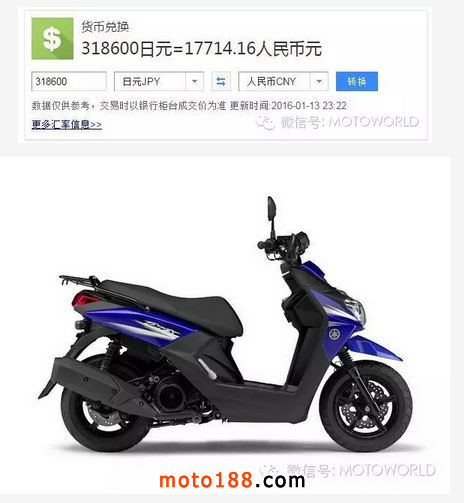 在日規版本中能發現與外銷的版本有些差異,日規版BW'S R本多了手把保護蓋與實用的后架總成,經典的藍黑配色與外銷版本完全相同。2016新款BW'S R售價為:318600円日元折合人民幣≈17714.16元