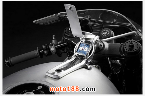 法國Praëm 公司和路威酩軒集團(LVMH)、瑞士制表業的百年先驅、全球奢侈腕表銷量前五的腕表品牌豪雅腕表精誠合作,將豪雅品牌的Monaco系列腕表整合到了摩托車的油箱上,讓在賽場上威風凜凜、粗獷豪放的摩托車看起來似乎也充滿了高檔手表的精致時尚元素