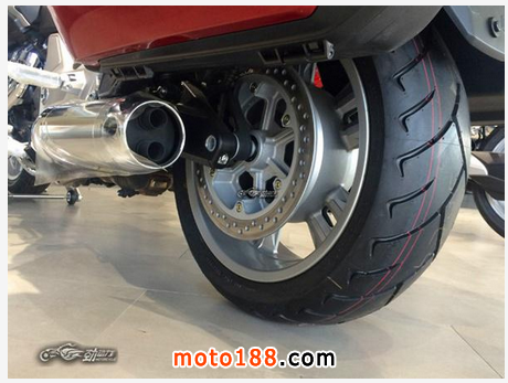 車輛采用了做工十分精致的鋁合金輪轂,不過造型上沒有什么亮點。前輪采用雙鉆孔盤配合單向3活塞卡鉗,后輪采用的是單鉆孔盤配合單向雙活塞卡鉗。制動系統的配置還是不錯的。