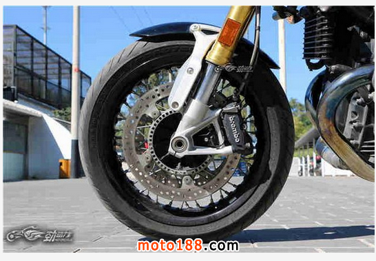 復(fù)古摩托車當然要是要配以鋼絲輻條的輪輞嘍。