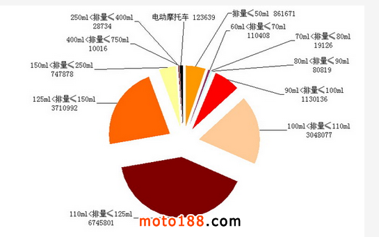 分排量統計中,150ml<排量≤250ml排量段產品共銷售742488臺,同比微增長2.33%。2015年,這個排量段仍缺乏有實力的產品,預計隨著兩家本田190產品的推廣,及其它優秀產品的上市,2016年將迎來新一波的強有力增長。
