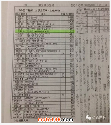 2015年7月在日本GSX-S1000正式上市,僅短短半年左右的時間,在全國兩輪機車銷量榜上排行第七位,可謂是后來者居上,如果換成全年都有現車銷售的話,位居榜首也是有可能的!