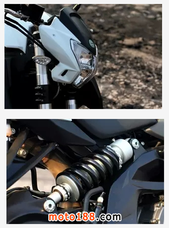 后減震的設計風格擺脫了國產車的俗氣,足以與任何進口街車媲美,前減震是最流行的倒立式,規格之大都可以與公升級車型相提并論了!車架形式在國產車中也是絕無僅有的,亞光黑的三角形后平叉粗壯大氣。