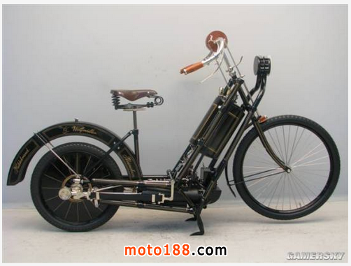 這款怎么看都不象是重機型號,簡單設計,時速也不過是 45 公里,不過它勝在年代久遠。這是 Hildebrand 和 Wolfmueller 在 1894 年生產出的雙輪摩托車,并在慕尼黑獲得專利,之后批量生產。如今看起來簡便的樣子更象是自行車,儲存至今的這款機車相當珍貴,有價無市。