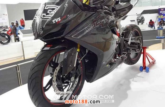 由BMW研發、印度摩托車廠TVS代工的G 310R在去年的EICMA上首次亮相,這款BMW小排量街車受到車友的廣泛關注。而本次TVS推出的這款Akula 310概念跑車搭載的就是G 310R的313c.c.單缸水冷發動機,為符合該車的跑車性能,TVS對該發動機進行了改進,使其有更大的動力輸出。另外,Akula 310采用了與G 310R相同的排氣系統,但更換了新的消音器;其減震系統和剎車系統也與G 310R十分相似。