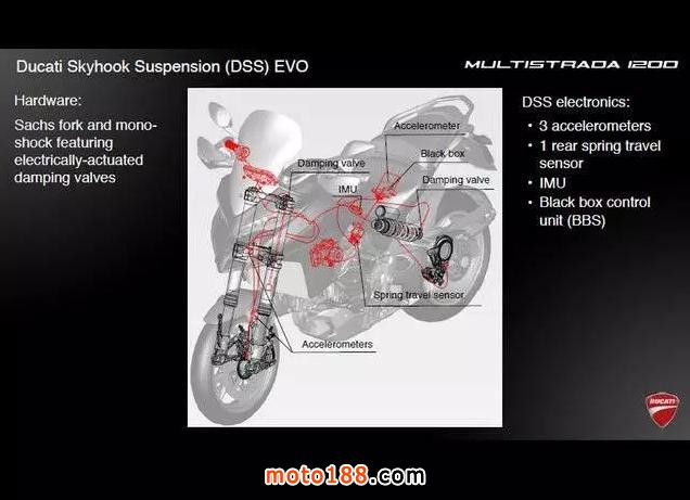 在2016款MTS 1200S上裝備的是DSS的升級版(EVO)。其變化主要在于采用了新的硬件、新的電子設備及新的軟件。在性能方面有了明顯提升。