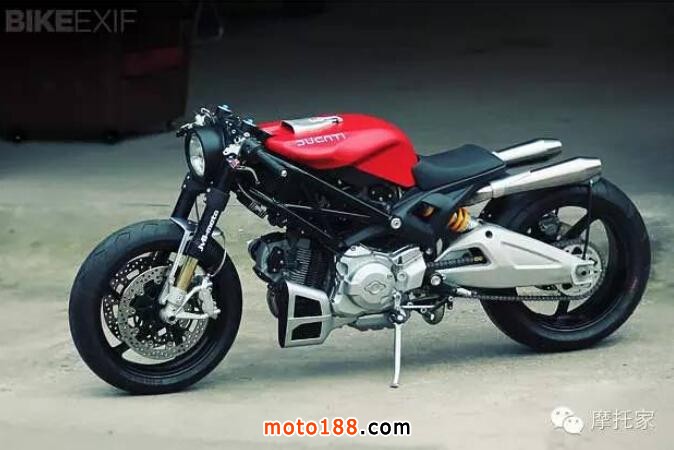 例如使用了很多手工打造的排氣和其他鋁合金部件以及來自Monster 696的搖臂。