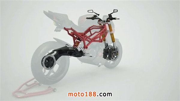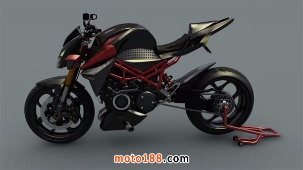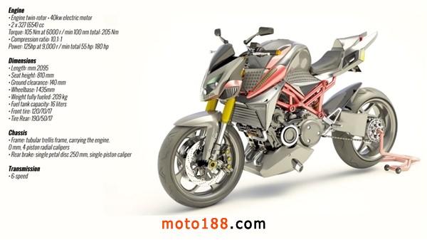 混動摩托車搭載40kW電動機和雙缸654cc燃油發動機,總動力達到了180馬力。