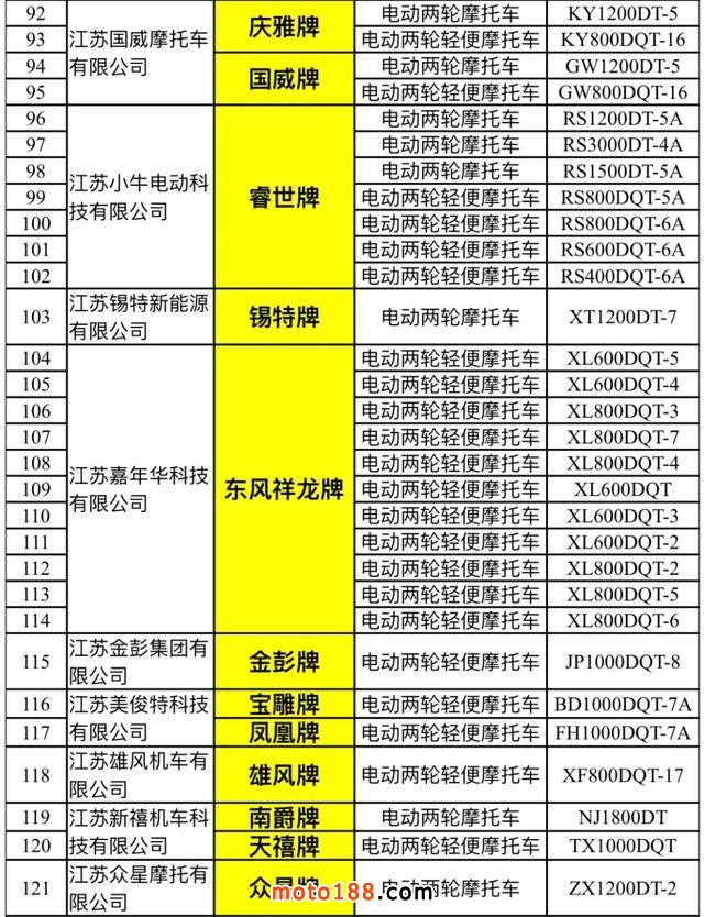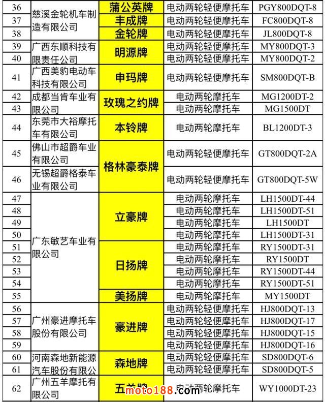 另外盛昊、宗申、賽鴿之星、雅迪、愛瑪、寶島、眾星等62個品牌的105款電動正三輪摩托車和26款電動正三輪輕便摩托車申報本批次目錄。