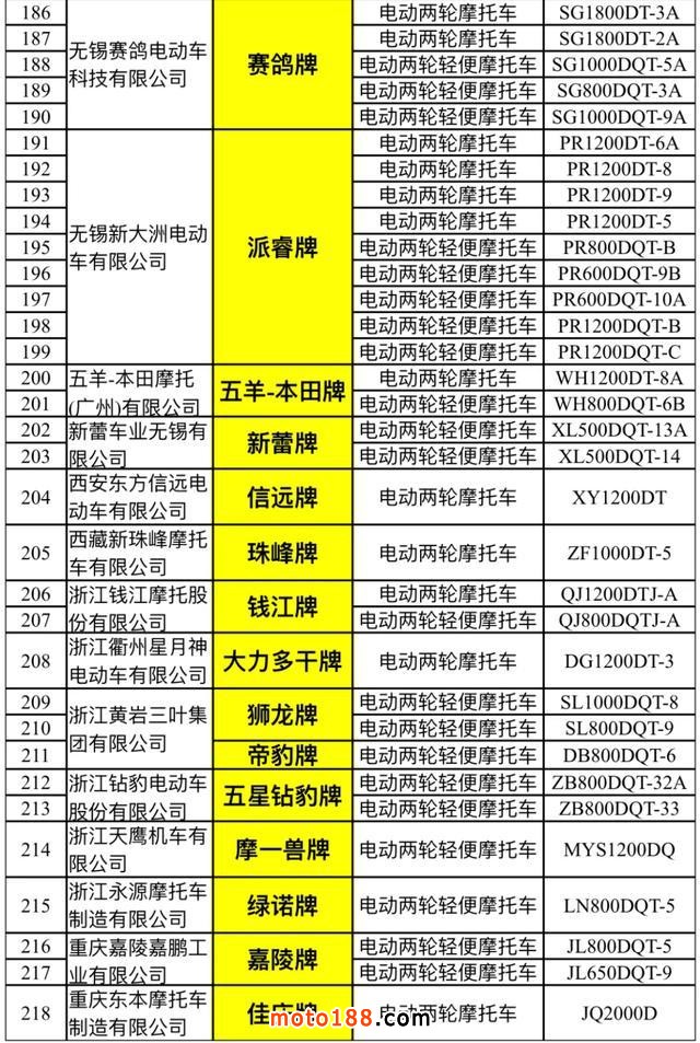 近日,工信部發布了第335批《道路機動車輛生產企業及產品公告》,雅迪、愛瑪、臺鈴、小刀、新日、格林豪泰、賽鴿、歐派、綠源、本鈴、珠峰、鳳凰等78個品牌的218款電摩、電輕摩進入了該目錄。