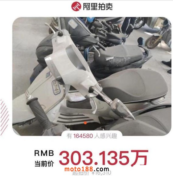 拍賣作為摩托車的關鍵詞還是頭一回,一輛京A牌照的二手車在阿里司法拍賣網上拍賣,從一開始就吸引住了吃瓜群眾的眼球,一萬多元的起拍價一路飚升,二十萬、五十萬、一百萬、二百萬... ...直至303萬才停了下來,當外行看不懂的時候,早已有人爆料內幕所在,這既是對禁限摩的嘲諷,也是黃牛運用規則的炫耀,當然,也帶火了一個大貿品牌——VESPA,這個曾經還只是高端踏板人群才知道的品牌一夜盡人皆知!