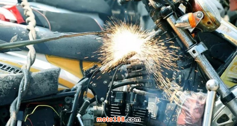 今天分享一組報(bào)廢摩托車大型銷毀場面照片,挖掘機(jī)、電焊槍一同上陣,場面過于壯觀