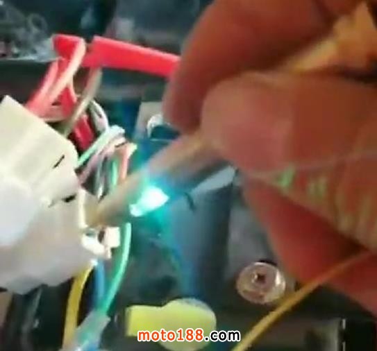 在有檢測儀表的情況下,騎乘人員可以使用檢測儀表檢測電瓶的充電電流,即將萬用表串接入充電系統的穩壓整流器與電瓶之間的線路中,測量發動機工作后充電系統對電瓶的充電電流,來判斷充電系統工作是否正常。
