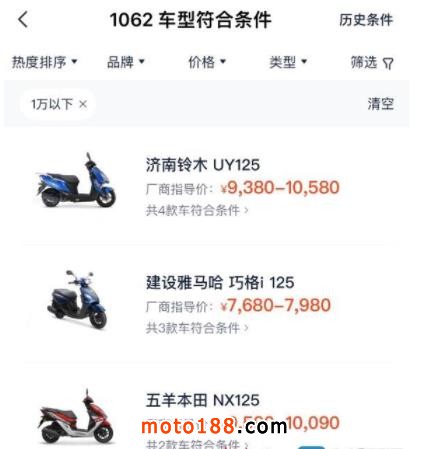 除了政策的松弛之外,價格的下降、入門門檻變低也驅動了摩托車的購買欲。記者發現,在一款摩托車評測軟件中,1萬元以下的車型數量最多,共有1062款,涵蓋了跑車、街車、踏板、復古、巡航太子、越野等全品類車型。在居民收入穩步增長,消費水平不斷提高的當下,買輛摩托車就像買一部貴點的手機一樣。