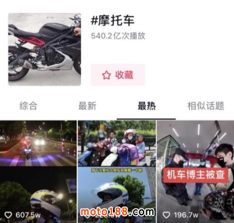 圖:在抖音里,摩托車相關的話題視頻播放量達到540.2億