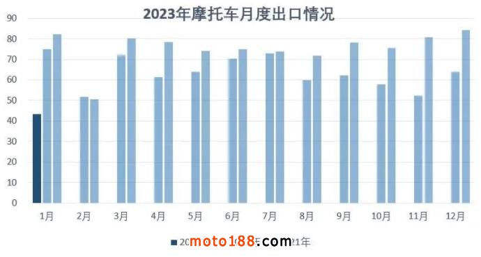 1月,我國摩托車出口下滑幅度較大,一方面是由于春節假期的影響,企業開工不足;另一方面,外貿需求明顯收縮、訂單轉移,也對摩托車出口也產生了較大的影響。2023年,外部環境動蕩不安,世界經濟下行,貿易保護主義抬頭,國際間產品競爭也逐漸加劇,我國摩托車出口所面臨的風險和壓力要大于往年;但同時也要看到,進入新的一年,我國大力推動外貿穩規模、優結構,促進外貿高水平開放、高質量發展,將會為外貿出口提供堅實的支撐。