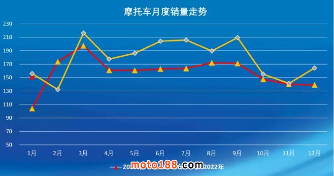 1-12月,摩托車生產(chǎn)企業(yè)完成工業(yè)總產(chǎn)值1197.60億元,同比下降1.87%;完成工業(yè)銷售產(chǎn)值1204.65億元,同比下降1.30%;完成工業(yè)增加值222.89億元,同比下降1.50%。