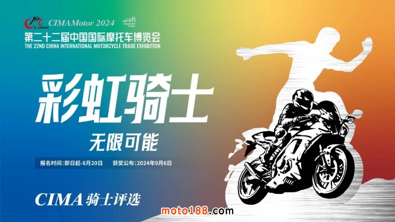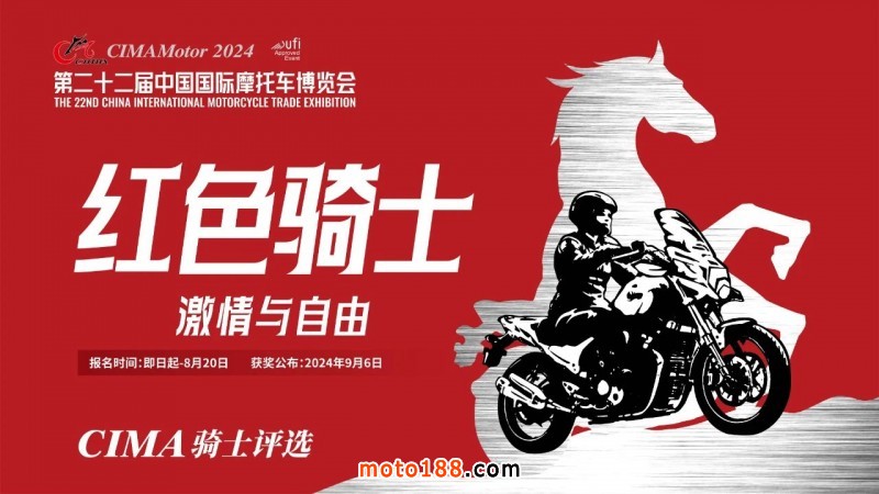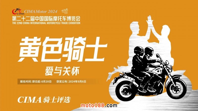 2024中國摩博會繼續重磅打造“CIMA騎士評選”,旨在通過摩托車企業、摩托車愛好者及行業媒體的廣泛參與,遴選行業代言人;讓他們成為傳播中國摩博會和推廣摩托車文化的代表!