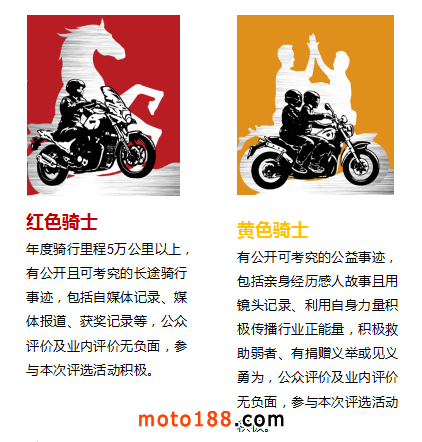 面向于摩托車發燒級愛好者的評選,他們具有較長的摩托車運動或休閑旅游的經歷,對摩托車背上的生活,充滿激情與活力。