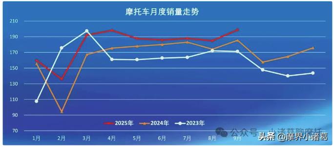 1-9月,共產銷摩托車1636.61萬輛和1633.63萬輛,產銷量同比增長9.89%和9.31%。
