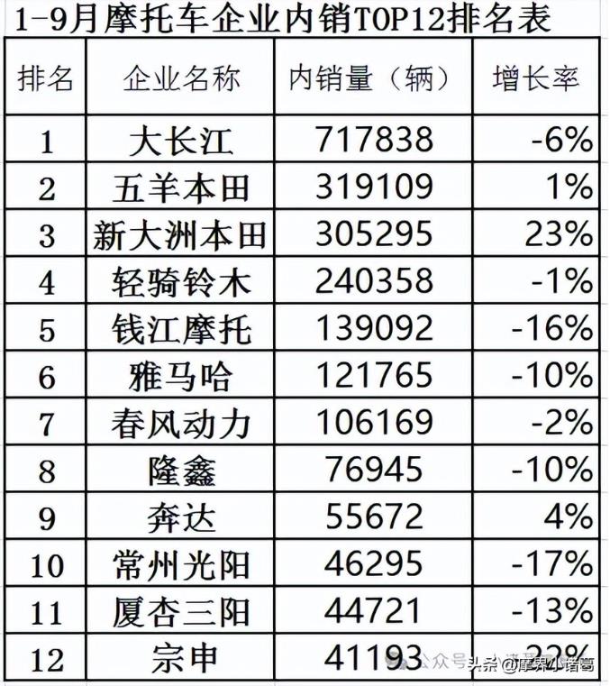 昨天我就提前發摩托車生企業內銷前12排名表: