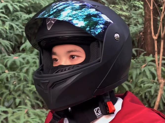 說到這,不得不提一下關于戴頭盔的要領。我們在甄選頭盔的時候,一方面要適合我們頭部的大小,另外一個考量因素就是當頭盔戴在頭上時不能有太多的位移,因為當我們遇到摔車事故,頭部著地的時候,如果頭盔與頭部產(chǎn)生松動或者脫落,就無法保護我們的頭部了。所以,正確的做法就是戴上頭盔之后要相對貼合頭部,在下頜位置的安全帶只需要保留一指位置空隙就可以了,這樣既能夠更貼合頭部,同時也不會勒得太緊。
