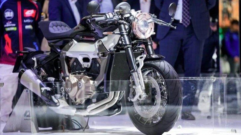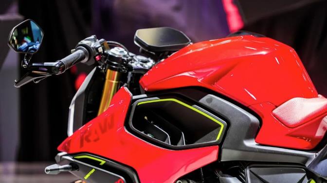 相較于動力表現,EQVVS 600的造型設計更具競爭力。從側面觀察,車身前后端線條簡潔利落,設計重心刻意突出中間的四缸引擎;完全平放的V4引擎形成對稱的左右結構,裝飾性包圍殼也遵循對稱美學,細節處理較為精細,較好地傳遞出“自由與力量的野性”這一設計理念。