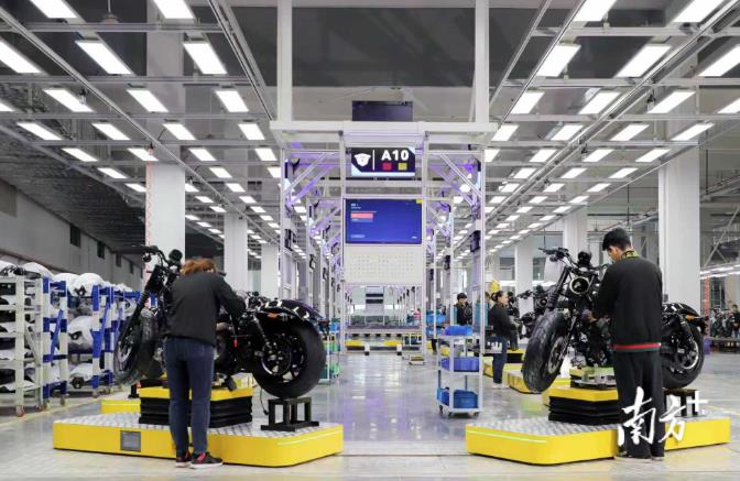 江門是中國摩托車產業示范基地。圖為企業生產車間。 南方+記者董有逸 攝