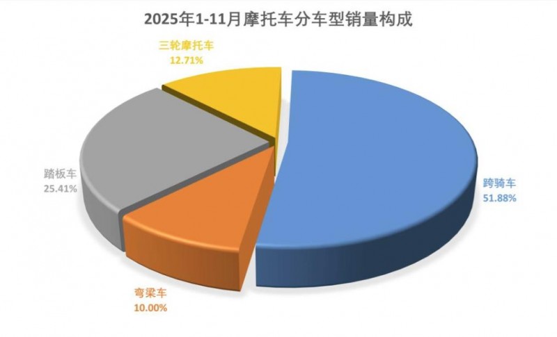 2025年1-11月份,我國摩托車整車出口量1208.23萬輛,同比增長21.27%;摩托車發動機出口121.69萬臺,同比增長17.3%;沙灘車出口43.35萬輛;摩托車零部件出口金額4.02億美元,同比增長12.93%。