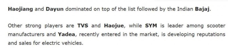 緊隨其后的是印度Bajaj,后續則是TVS,豪爵、三陽和近期進入市場的雅迪。