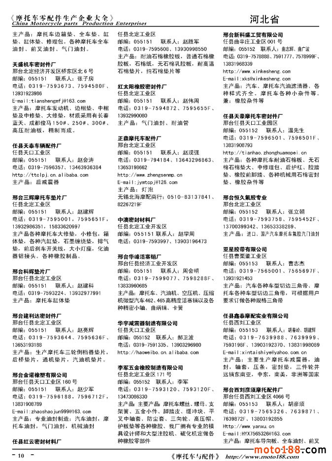 2010版摩托車配件生產(chǎn)企業(yè)大全
