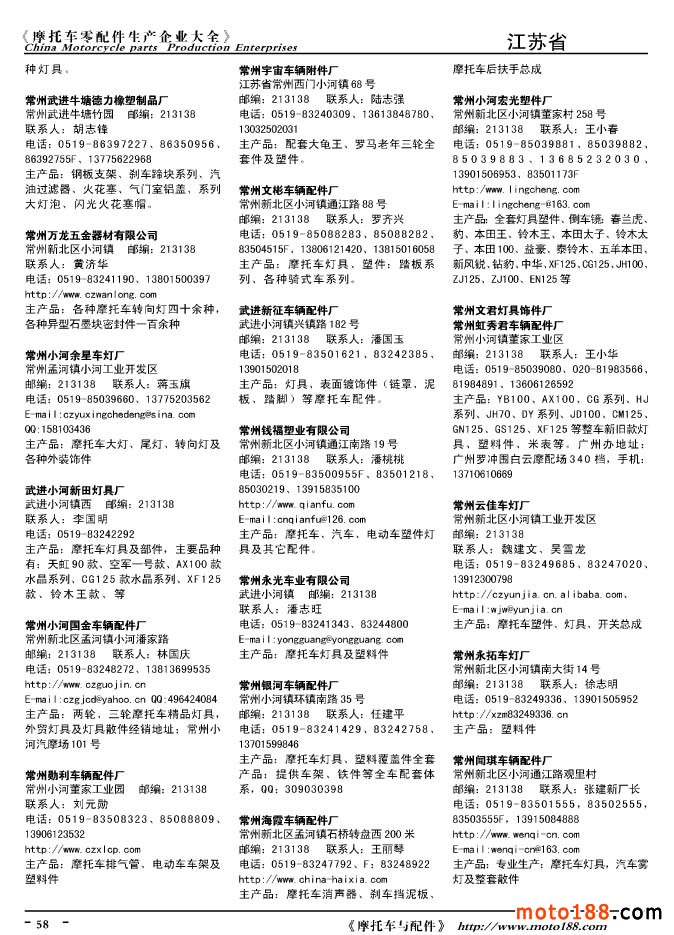 2010版摩托車配件生產企業大全