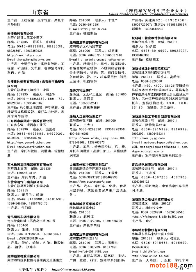2010版摩托車配件生產企業大全