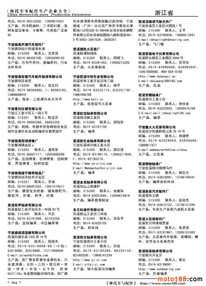2010版摩托車配件生產(chǎn)企業(yè)大全