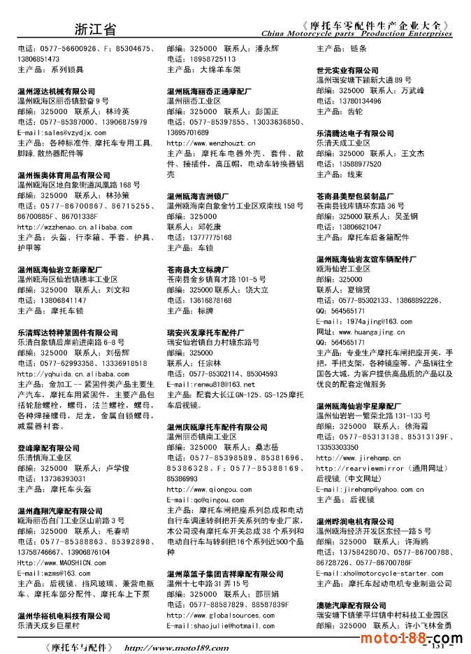 2010版摩托車配件生產(chǎn)企業(yè)大全