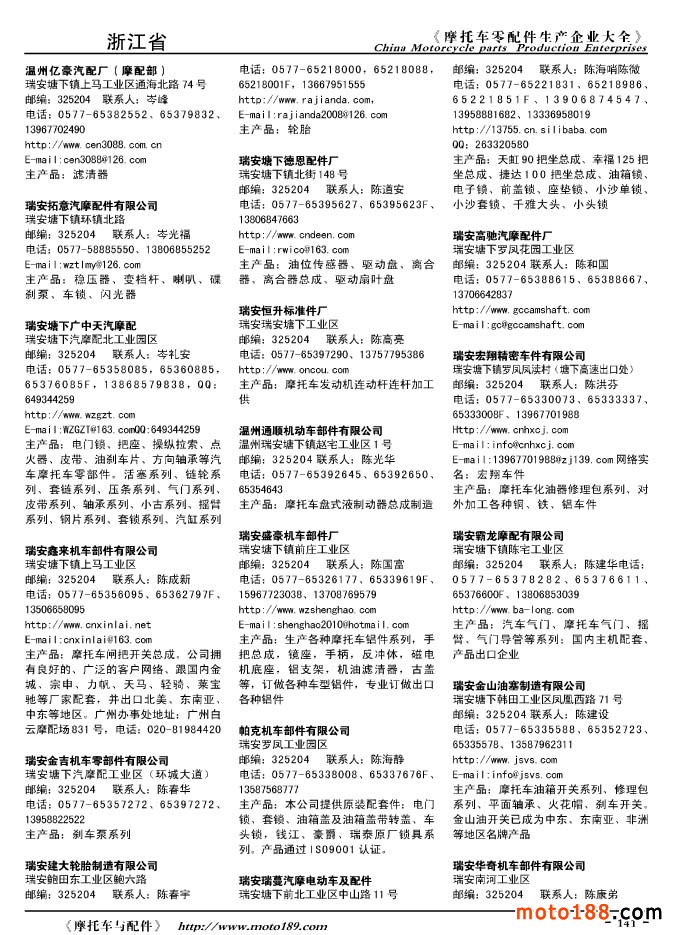 2010版摩托車配件生產企業大全