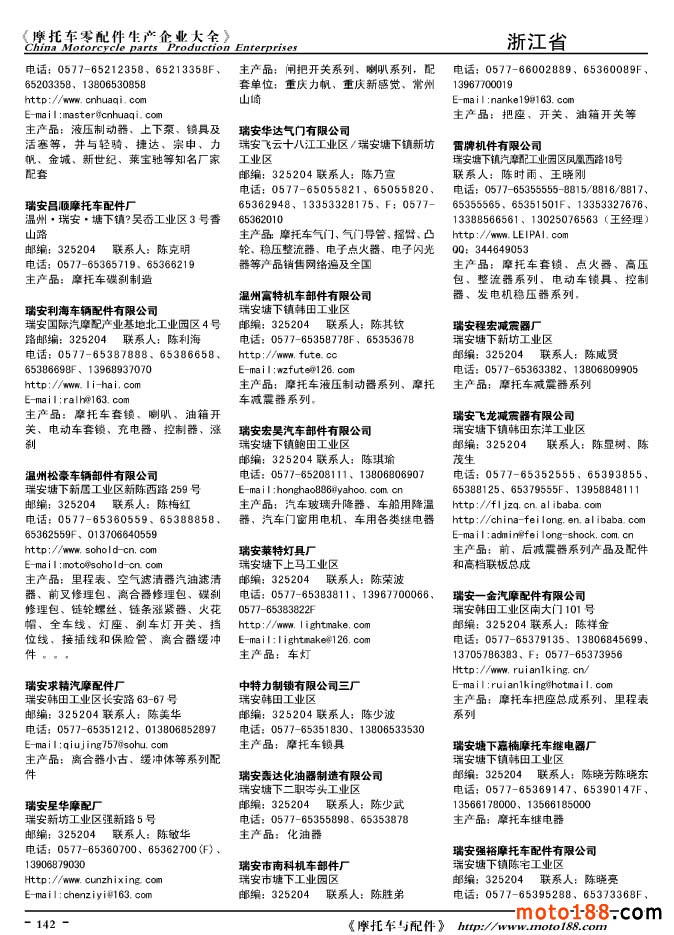 2010版摩托車配件生產(chǎn)企業(yè)大全