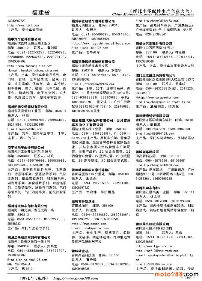 2010版摩托車配件生產企業大全