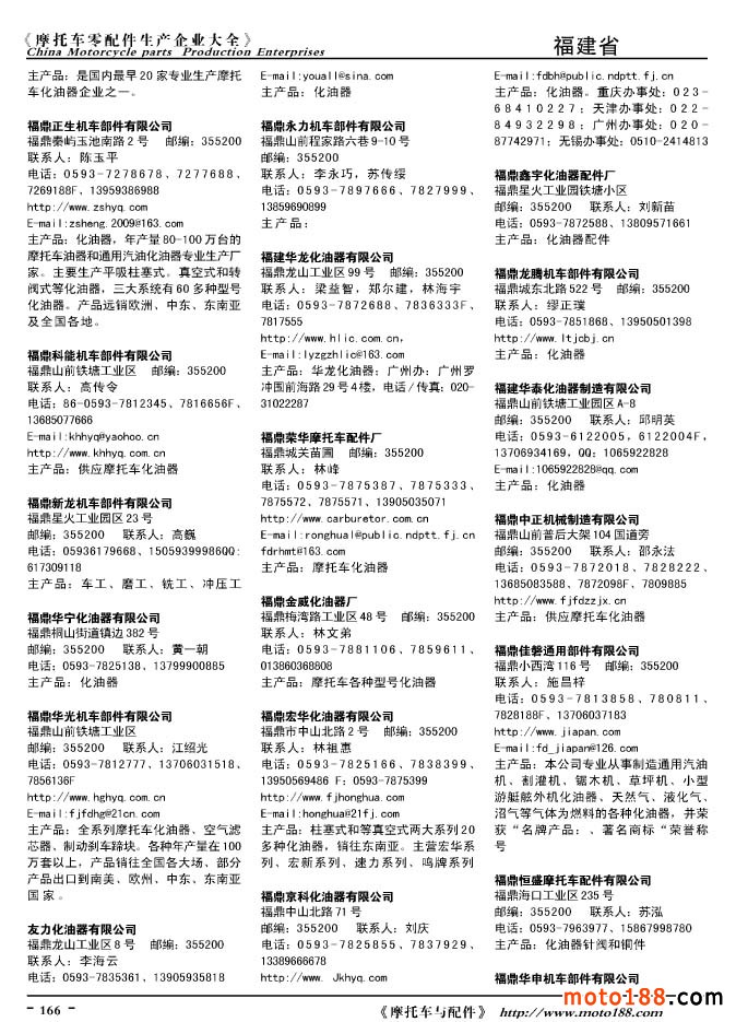 2010版摩托車配件生產企業大全
