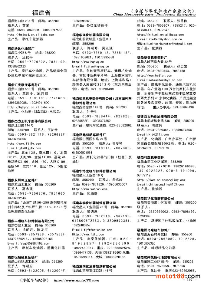 2010版摩托車配件生產企業大全