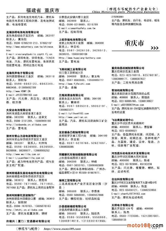 2010版摩托車配件生產企業大全