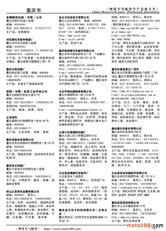 2010版摩托車配件生產(chǎn)企業(yè)大全