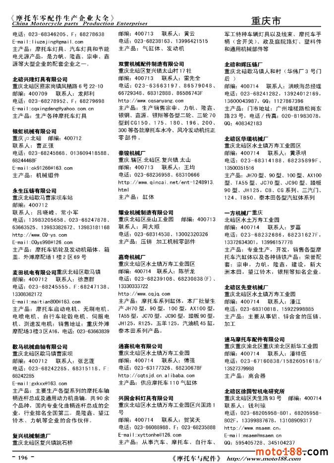 2010版摩托車配件生產企業大全