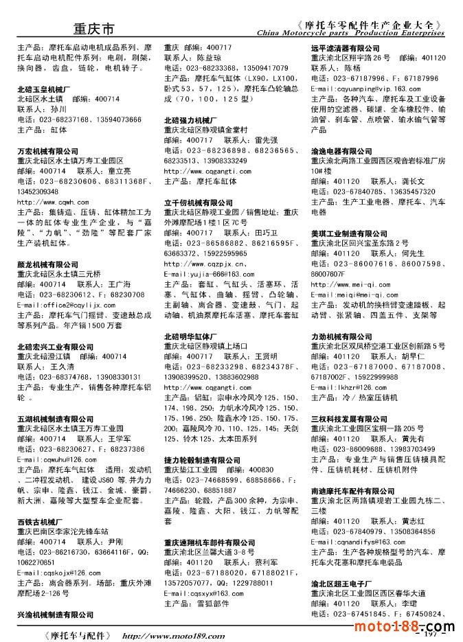 2010版摩托車配件生產企業大全
