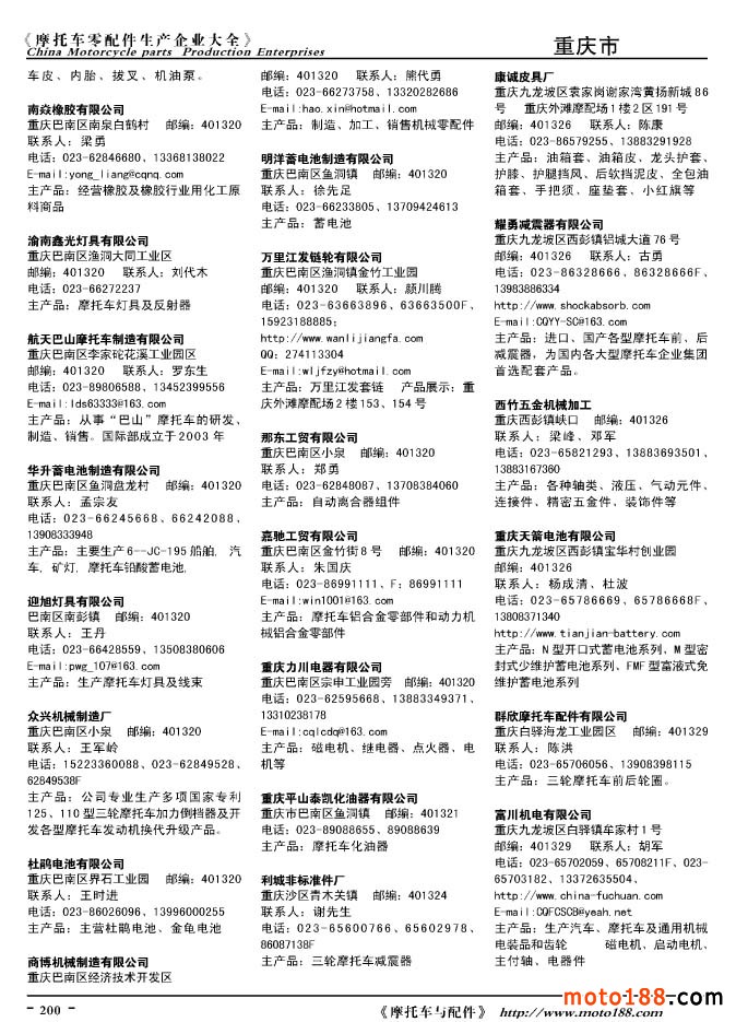 2010版摩托車配件生產企業大全