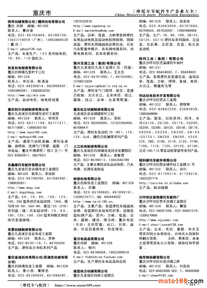 2010版摩托車配件生產企業大全